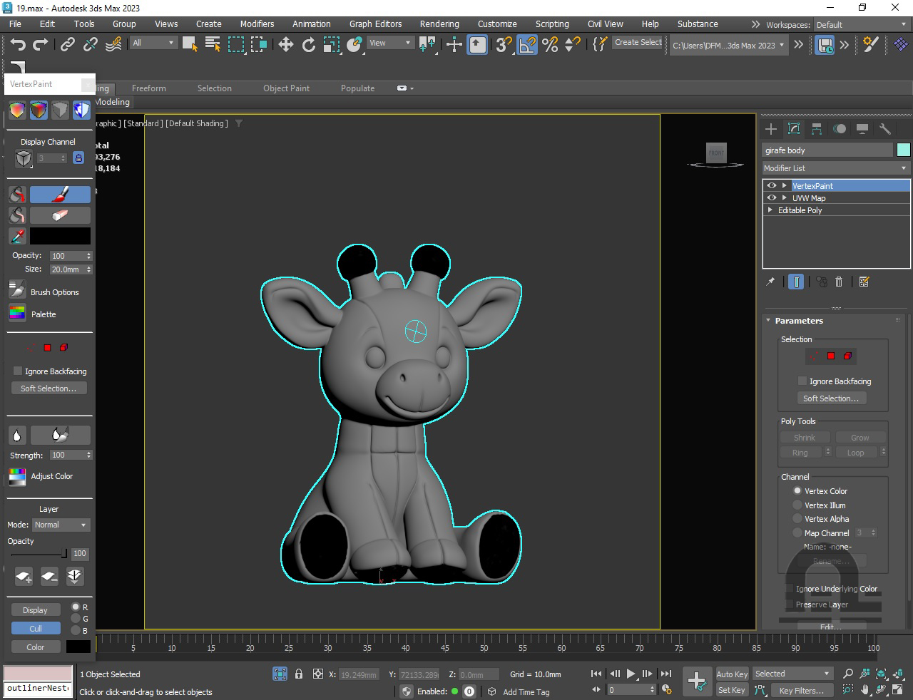 پروژه مدلسازی عروسک در تری دی مکس WIP ۲۷ دی ۱۴۰۴ مدلسازی (4gon): متریال کرونا با مپ کامپوزیت:تست رندر کرونا با متریال پولیش:ورتکس پینت برای تفکیک متریال: اختصاص دادن مپ چنل برای تفکیک متریال: